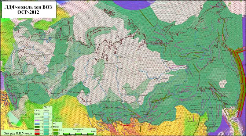 ЛДФ-модель зон возникновения очагов землетрясений (ВОЗ), положенная в основу расчётов всех карт комплекта ОСР-2012: |